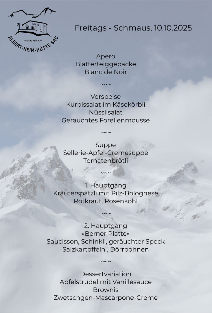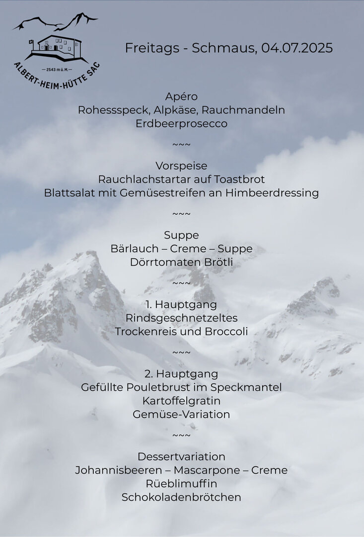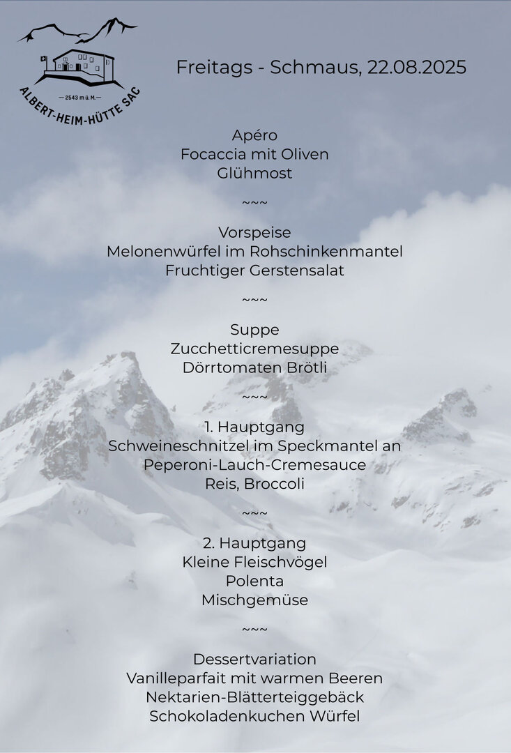 - einem 5-Gang-Gourmet-Menu à la Albert-Heim-Hütte